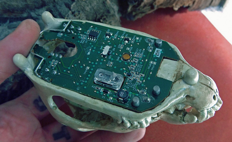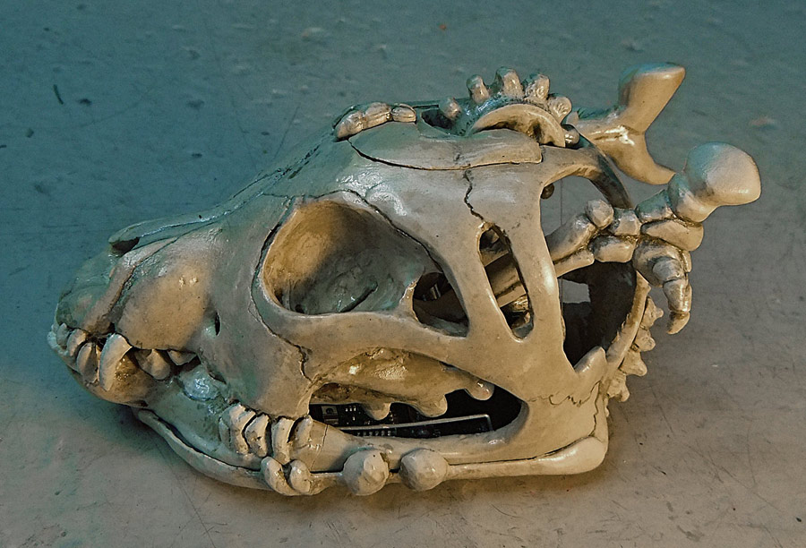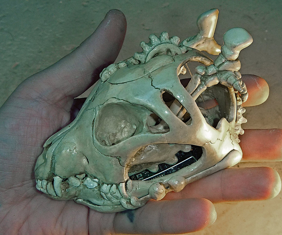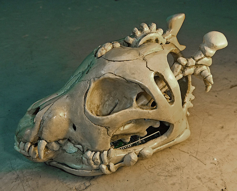 [...] like a real bad-ass while you’re formatting those TPS reports. It’s all thanks to this computer mouse built inside the skull of a dog. [Shannon Larratt] dug through his collection of skulls and came up with this one because it fits [...]