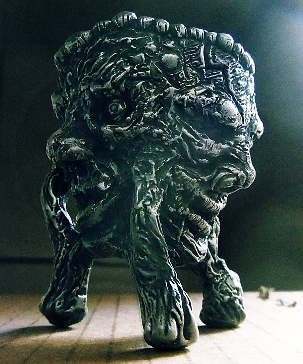 As you know I have been making sculptures based on Nefarious’s “Littlest Pet Shop” toys in which I edit them to turn them into monsters and characters from various science fiction or horror fantasies. You may remember the “Mad Monkey” steampunk-esque alchemist that I’ve posted before. Stock is expanding on him. As I build up a mold collection, each time I do a casting run my stock grows exponentially.