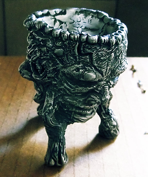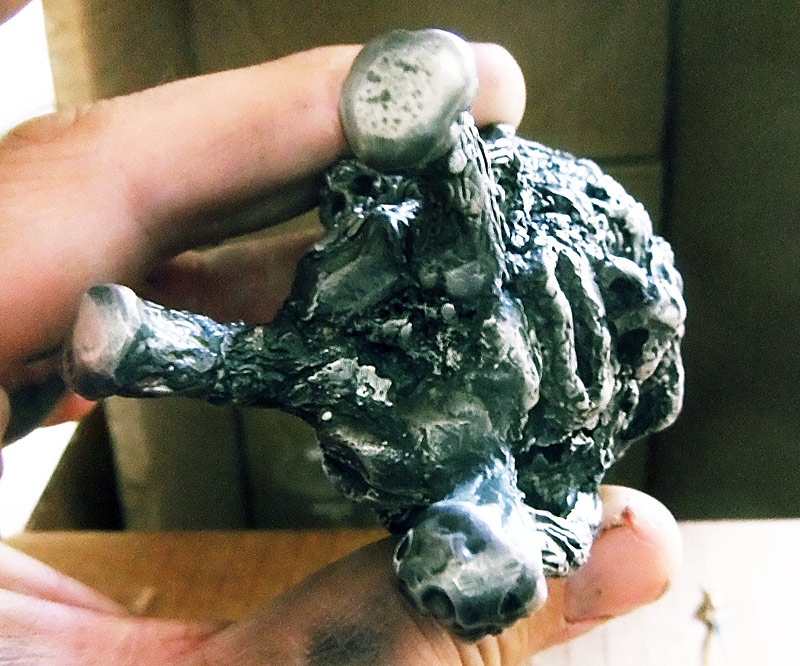 On the big road trip that we just got back from, whenever I had a spare moment I was carving the masters for various jewelry and sculpture items. There is still loads of stuff in the queue, but I had a chance over the last couple days to make plenty of molds and have run a couple test casts, as well expanding my stock for the store. Clock’s ticking there — should just be a couple weeks now and I’ll have much of this for sale. Apologies for my dirty hands in the pictures… I’ve been working with graphite and other hard to clean stuff since I got back. Anyway… huge entry begins now.
