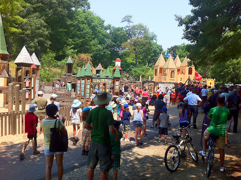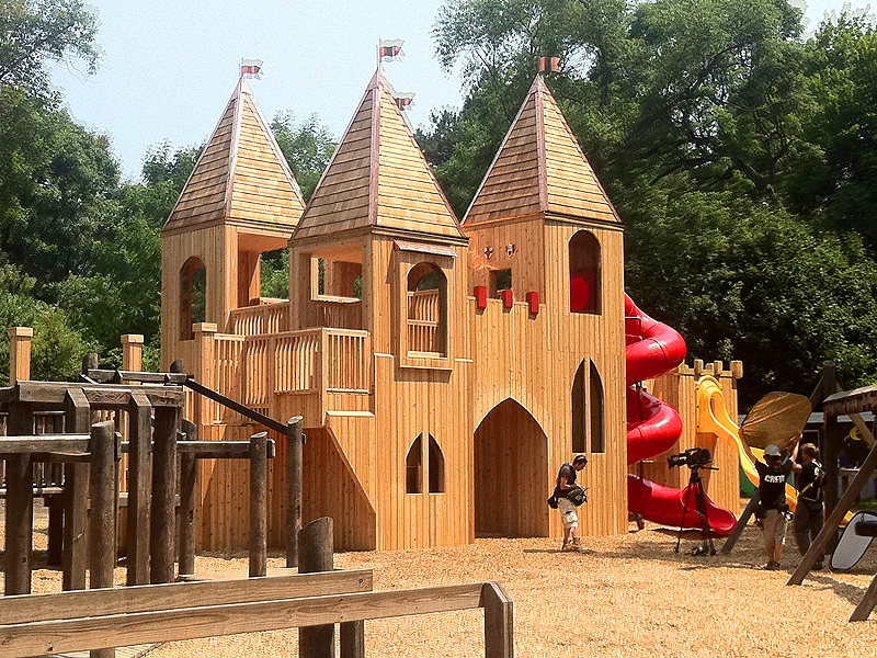 But the great news about the park is that they’ve rebuilt the castle that some assholes burned down a while back. It’s much larger now — I’d say solidly twice as big — and has added a few cool features. It also seems safer, but that’s a bit of a negative as far as many kids are concerned — apparently there aren’t as many little nooks to hide in. But that castle in the past was a place where kids could hide and truly disappear into so I think that made parents nervous. All in all it’s a massive improvement, so I guess that it turned out for the best.